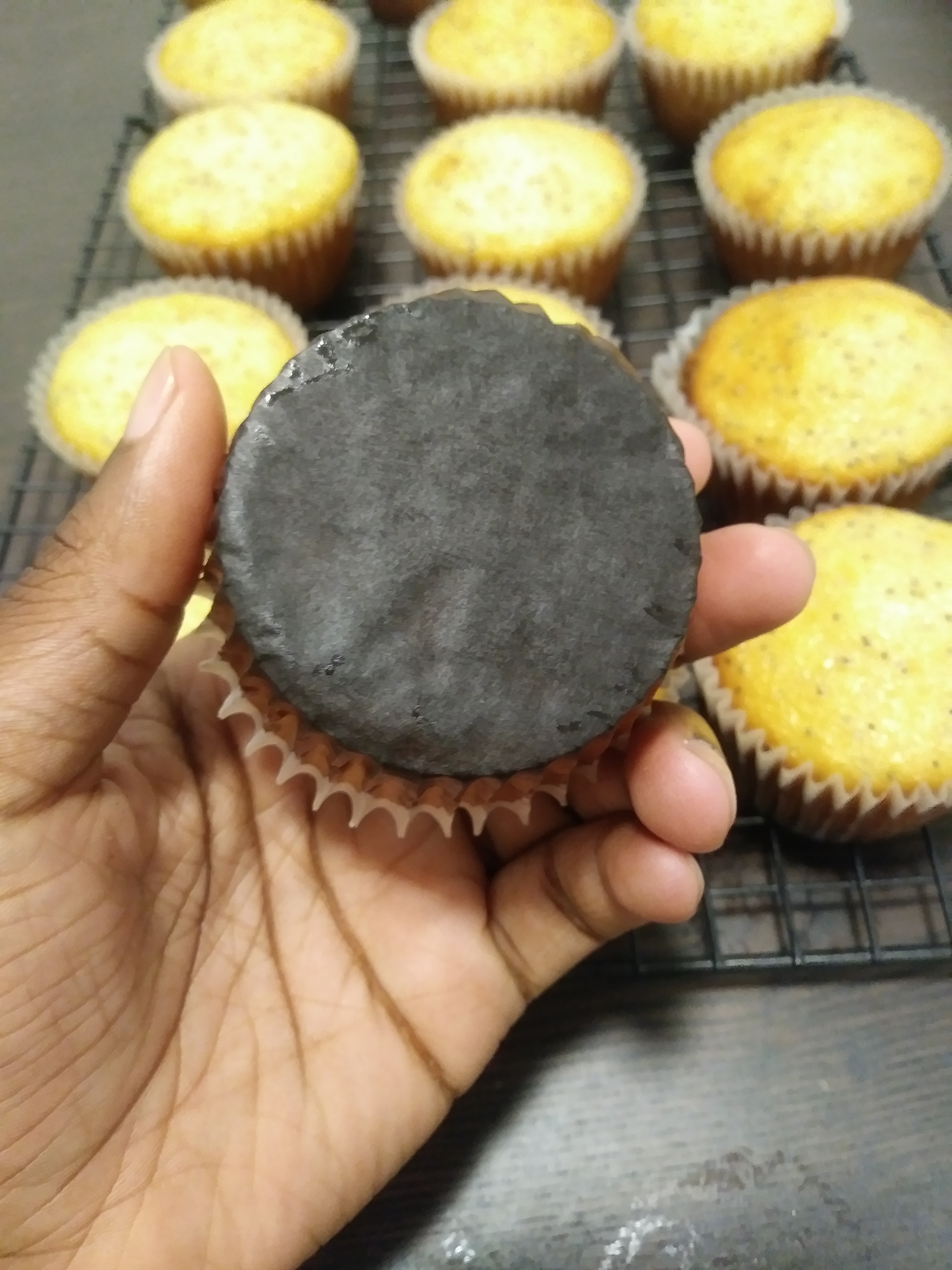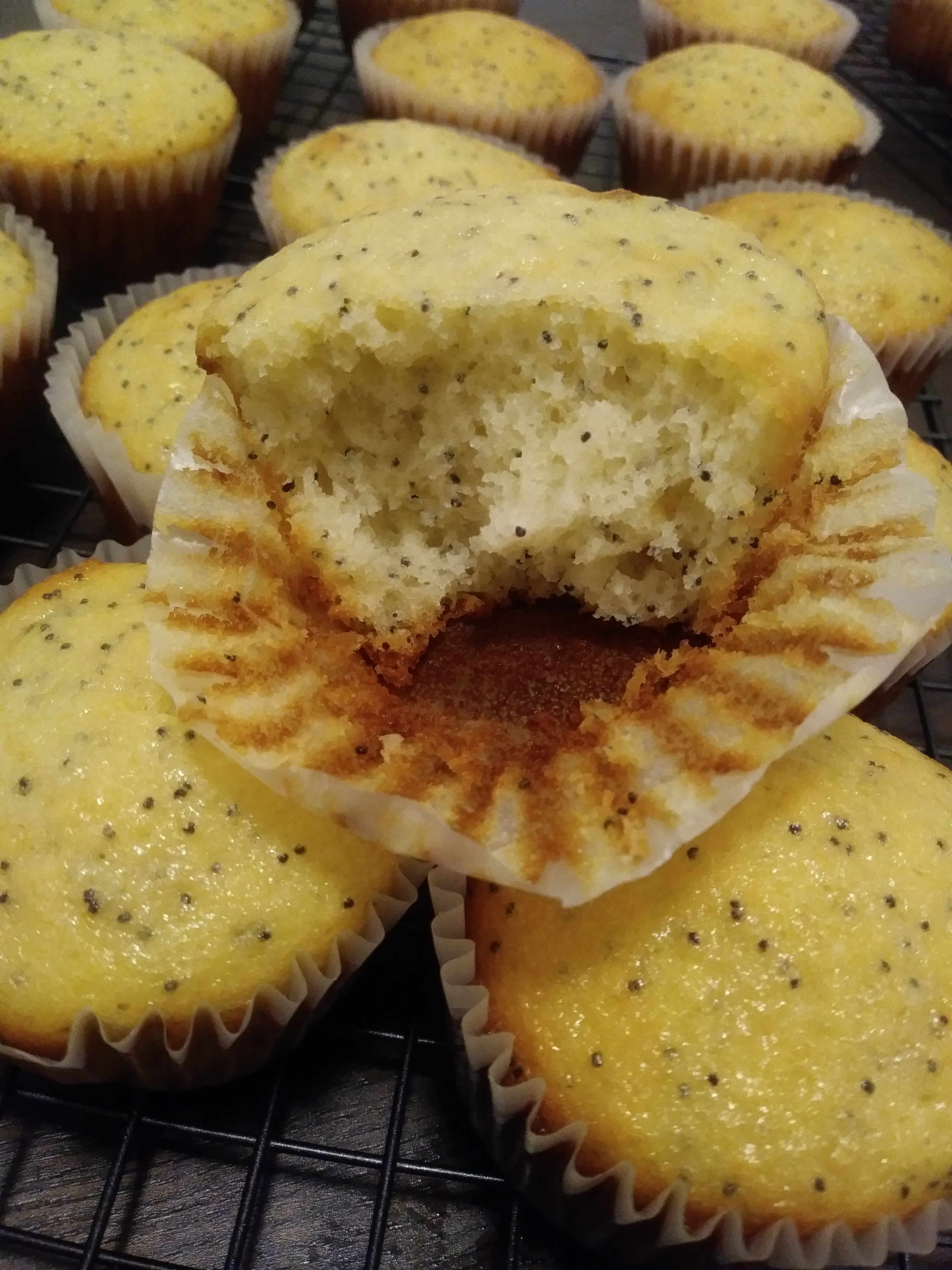 To make things worse, the muffins were bland. Amazing texture aside (I’m talking light as air, so soft) it was like eating bread. So I tried to spruce up the next batch with some lemon oil. They tasted slightly better but, look at that! They burned. I remade the improved recipe with the lemon oil for 24 muffins and I still burned the damn things. This disaster isn’t going to make swear off muffins forever, but I’m slightly traumatized.