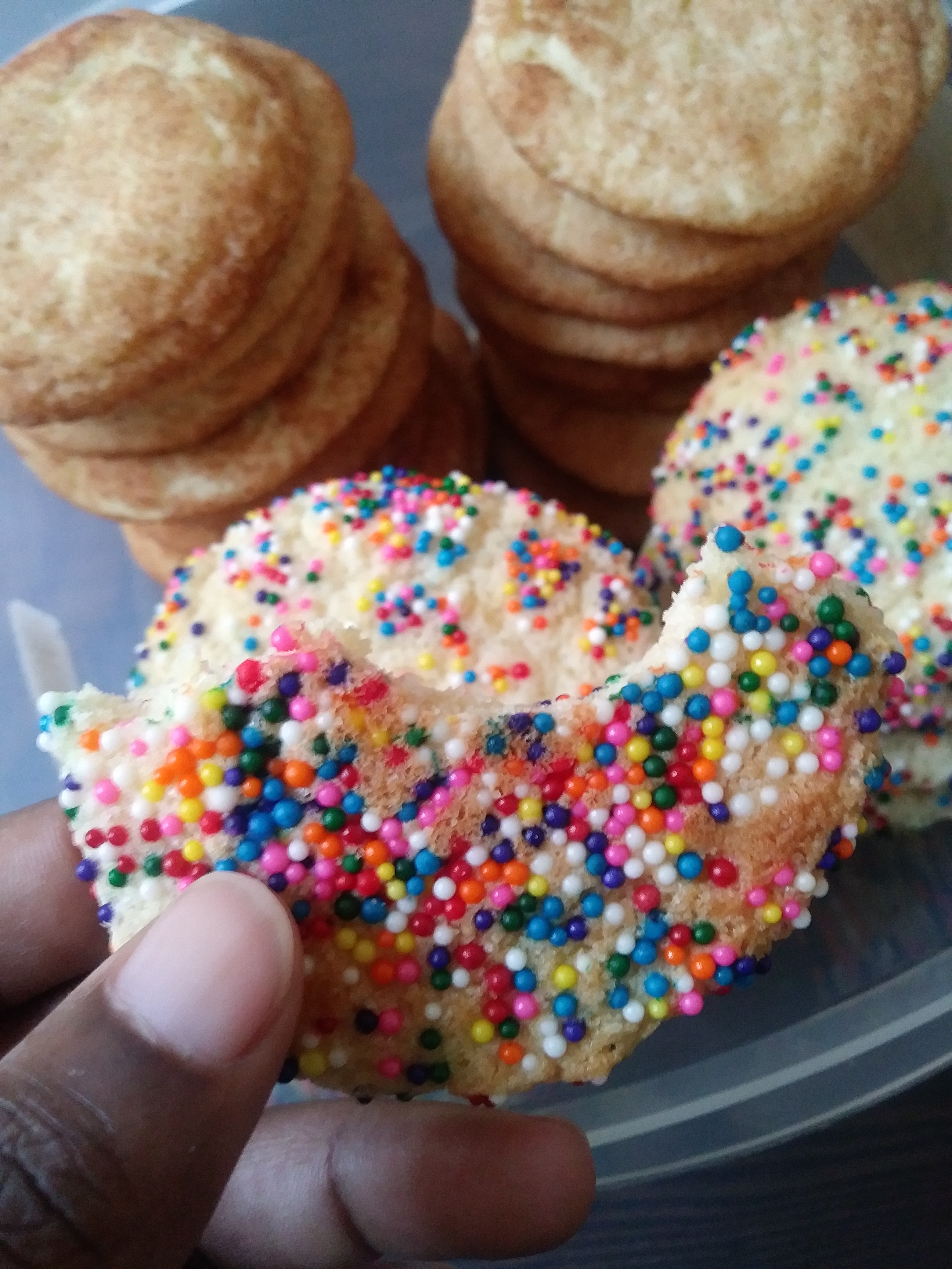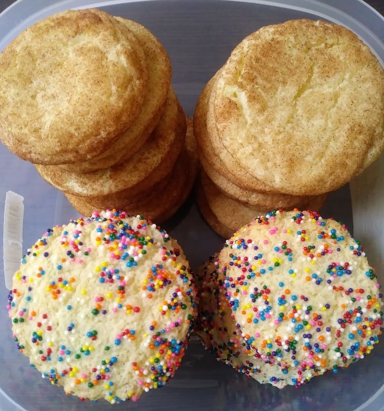 Smitten Kitchen’s snickerdoodle recipe strikes again. I truly only made these because I spent $4 on sprinkles and needed to use them on something. They were pretty but the classic cinnamon sugar coating was the winner. Comparing this batch to the first batch in an earlier post, these were much flatter. Still good, but I wonder what changed.
